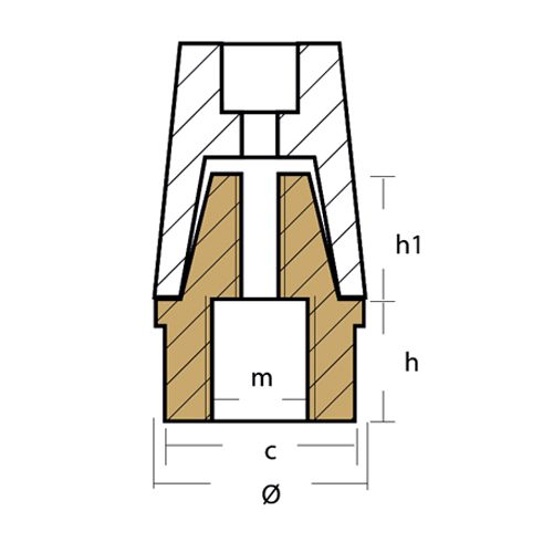 | COD | kg | lbs | c | h | h1 | Ø | m | Ø shaft | |