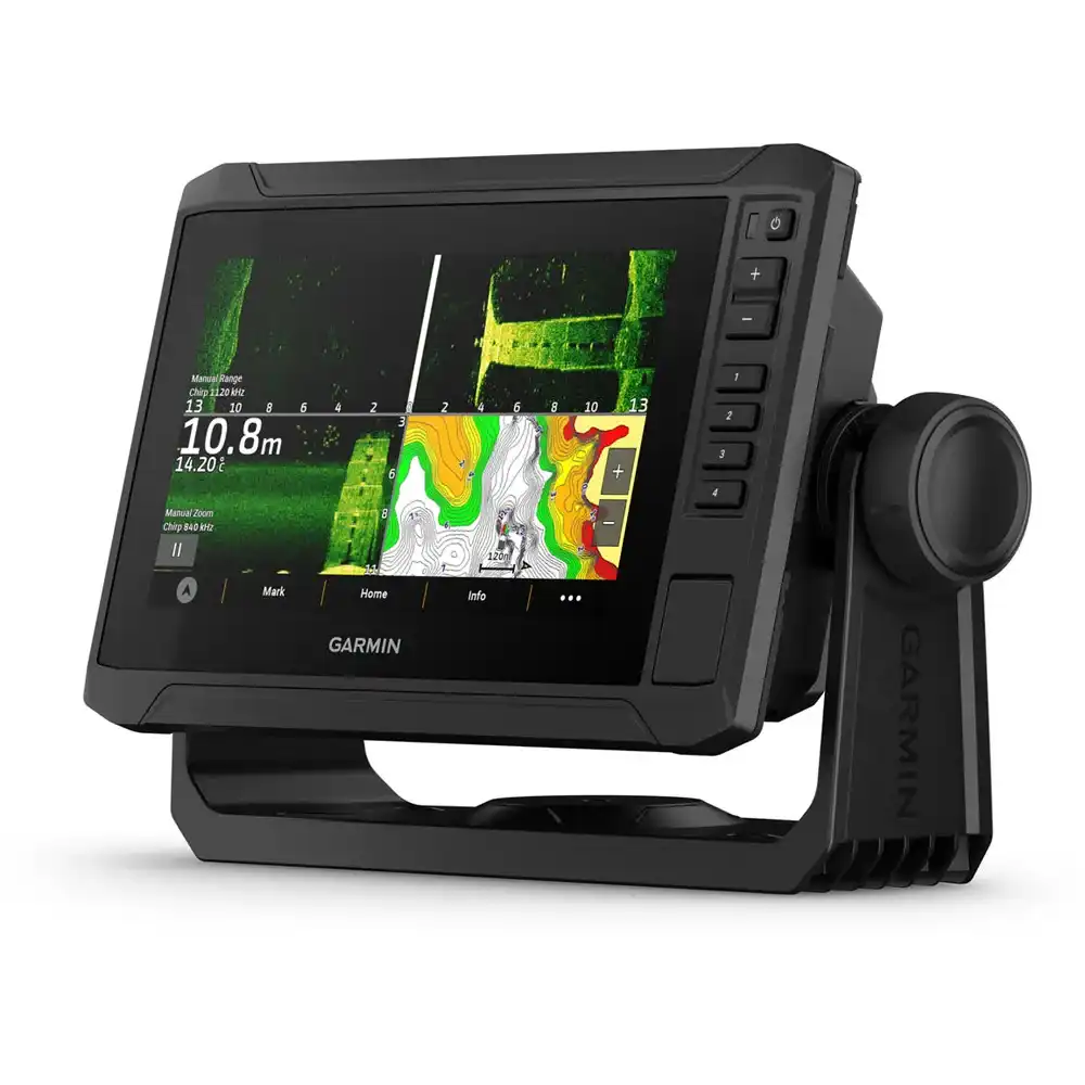 Añade cartas: Disfruta de una cobertura y un nivel de detalle sin precedentes con los mapas integrados Garmin Navionics+ opcionales o los mapas Premium Garmin Navionics Vision opcionales con sombreado de relieve de alta resolución, imágenes por satélite, imágenes de sonda y mucho más.