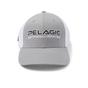 La gorra Trucker 1203222002-LGY tiene el logotipo de Pelagic bordado, en la parte de atrás tiene malla para mejor ventilación.