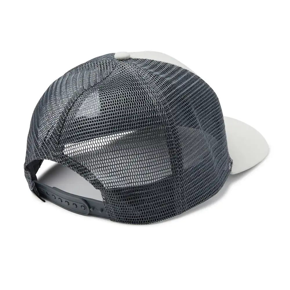 La gorra Offshore Marlin Stamped Pelagic tiene en parte trasera una malla ventilada y el parte delantera tiene el logotipo de Pelagic.