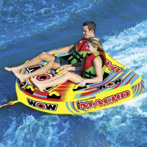 A diferencia del remolcable tradicional, en el que sólo pues tumbarte, en el Macho Combo 2 puedes también sentarte o arrodillarte. Esto gracias a los asientos Secure Form-Fit añadidos, elaborados con un arnés interno de nylon de alta resistencia para evitar que el trasero del pasajero golpee con el agua. Además, se añadió una capa de material Flex-sit de alta resistencia con tratamiento de protección UV para que el asiento se adapte a la forma y sea ultra cómodo.