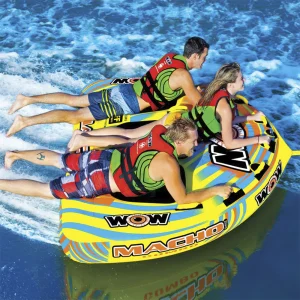A diferencia del remolcable tradicional, en el que sólo pues tumbarte, en el Macho Combo 3 puedes también sentarte o arrodillarte. Esto gracias a los asientos Secure Form-Fit añadidos, elaborados con un arnés interno de nylon de alta resistencia para evitar que el trasero del pasajero golpee con el agua. Además, se añadió una capa de material Flex-sit de alta resistencia con tratamiento de protección UV para que el asiento se adapte a la forma y sea ultracómodo.