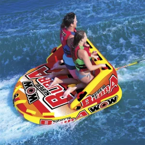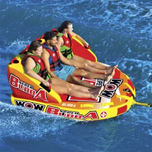Debido a su base lisa, el Bubba puede ir muy rápido en el agua si es lo que los pasajeros prefieren. El Super Bubba viene con puntos de remolque delanteros y traseros para que puedas montar sentado, tumbado o de rodillas al estilo carro.