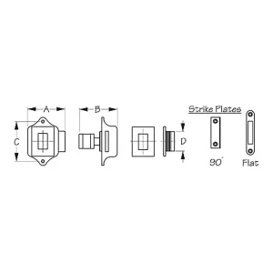 Las carcasas de pestillo de borde con un botón pulsador cuentan con un cierre aerodinámico de acción positiva, lo que garantiza que los gabinetes y cajones permanezcan cerrados hasta que se presione deliberadamente el botón. Adecuado para uso en el lado izquierdo o derecho. Montaje de embutir para una apariencia elegante y acabada. Construido de plástico resistente con una perilla de acero inoxidable 304 resistente a la corrosión. El pestillo se instala con dos sujetadores n.° 6 RH, las placas de cierre (224320 planas o 224321 de 90°) por separado. El espacio entre los orificios en la placa de cierre plana (224320) es de 1-7/8”. El espacio entre los orificios en la placa de cierre de 90° (224321) es de 1-3/16”. Para aplicaciones OEM, se encuentran disponibles distintas combinaciones de roseta/botones.