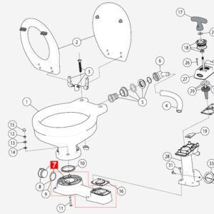 Jabsco presenta esta base de repuesto en O para el montaje de su inodoro manual, construida enteramente de plástico, ideal para usar en las series: 29090 y 29120.