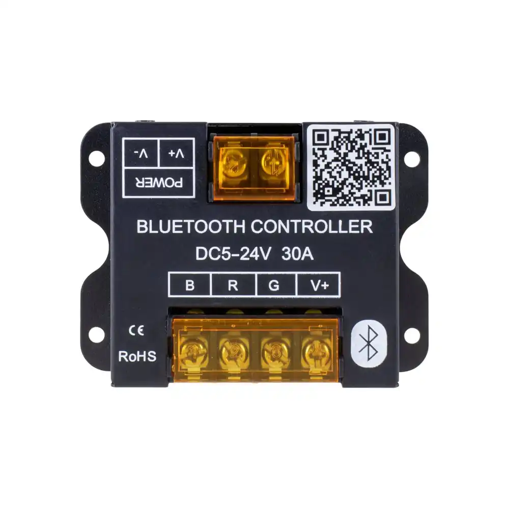 Este controlador LED tiene una capacidad de carga máxima de 10 amperios por canal y es compatible con tiras de luz LED que funcionan dentro de un rango de 5-24 VCC. La carga máxima de 10 amperios por canal y es compatible con tiras de luz LED que funcionan dentro de un rango de 5-24 VCC. La carga máxima es de 400 vatios a 12 voltios o 800 vatios a 24 voltios.