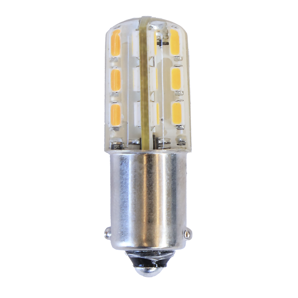 La mini bayoneta 41075 es de luz blanca cálida, cuenta con diseño de torre, pines paralelos y contacto único.