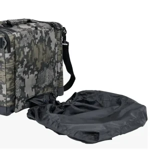 Esta maleta está elaborada con poliéster reciclado 600D con cremalleras de nailon y una base de lona con costuras selladas que ayudan a mantener el agua fuera cuando se está sentado en la cubierta de un bote o superficie mojada.