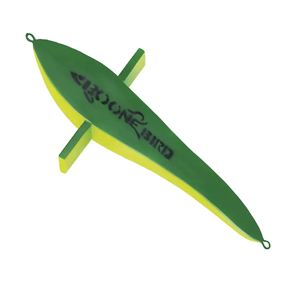 Este señuelo debe fijarse al eslabón giratorio a presión de su línea doble con el ojo líder en el señuelo fijado a la parte posterior del señuelo Bird.