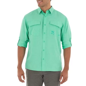 Camisa de pesca para Caballero Heather Cationic – Manga Larga – Color Cascada – Guy Harvey