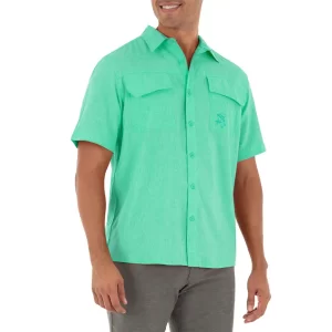 Camisa de pesca para Caballero Cationic – Manga corta – Color Verde Cascada – Guy Harvey