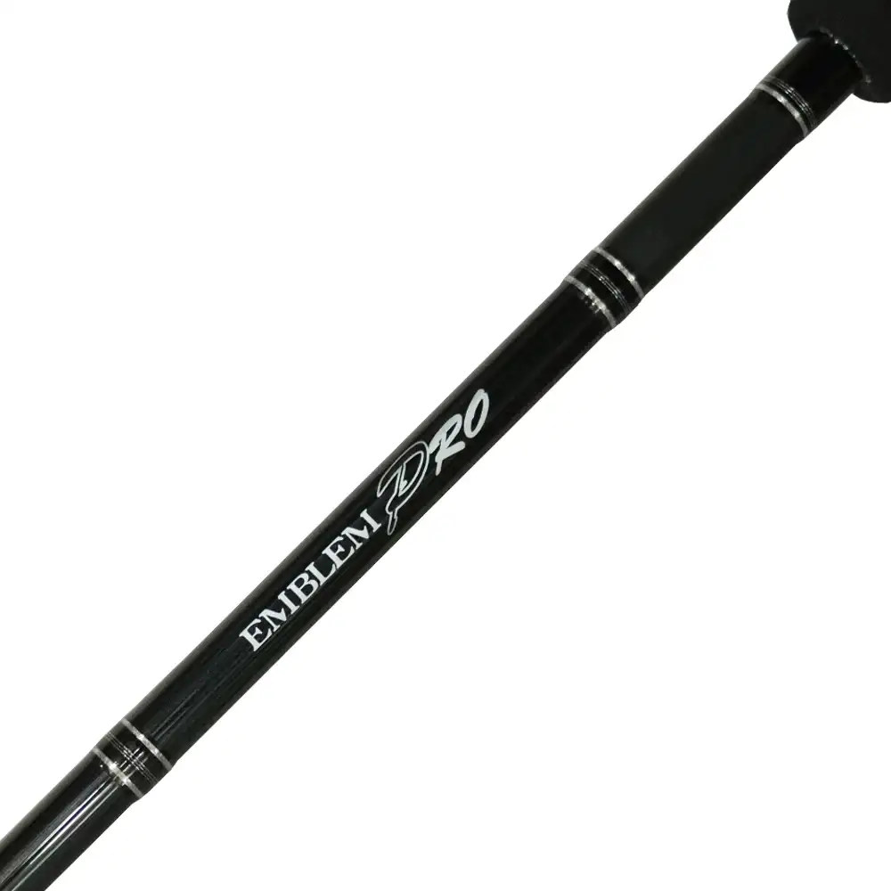 Las cañas Emblem Pro Surf están construidas con un blank de grafito ligero, e incluyen un mango de EVA y un portacarretes ergonómico con capucha para brindar comodidad durante todo el día.