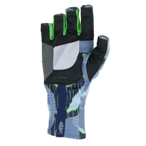 Los guantes de pesca GLOVEPRO-CAMO SolPro de Aftco tienen un diseño minimalista con protección solar integrada de UPF 50 que te mantendrá protegido y los ¾ dedos garantizan que no pierdas sensibilidad ni libertad para hacer nudos y lanzar.