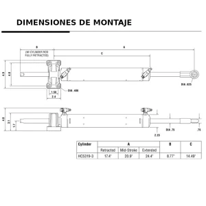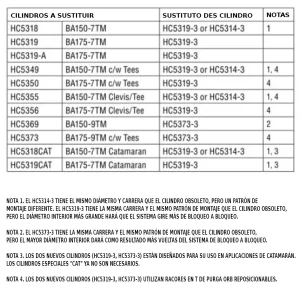 El HC5319-3 sustituye a varios cilindros Capilano que han quedado obsoletos. Este sustituto conserva las mismas configuraciones de montaje y dimensiones que los modelos anteriores, aunque el diámetro interior del cilindro puede haber cambiado.
