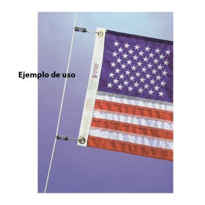 Los clips para banderas de driza están hechos de acero inoxidable y son de resorte. Tienen un agarre antideslizante y pueden soportar velocidades de hasta 65 mph.
