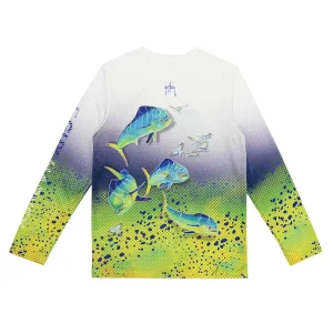 Playera para Niño Four Mahis 30 UPF – Manga Larga – Color Blanco Brillante – Varias Tallas – Guy Harvey