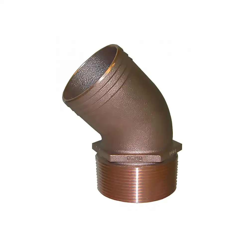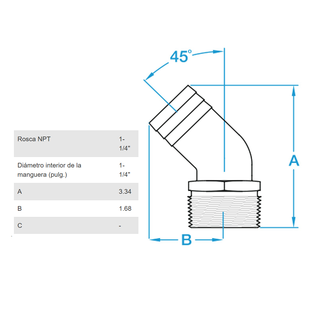 Codo PTHD-1250 con conexión de manguera NPT 1 ¼” de 45 grados.