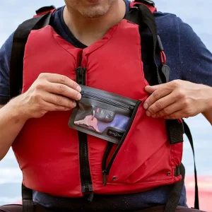 La cartera impermeable RunOff es lo suficientemente compacta para caber en tu bolsillo, donde protege y organiza objetos pequeños.