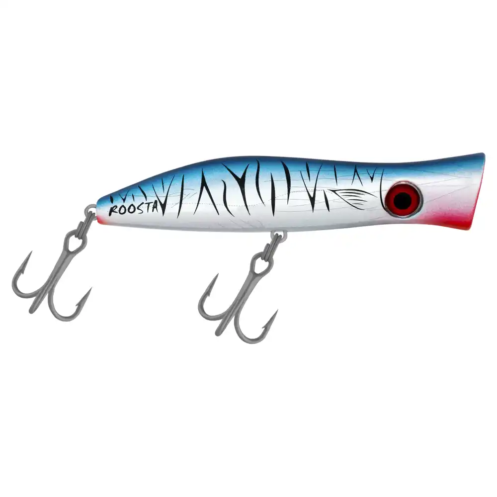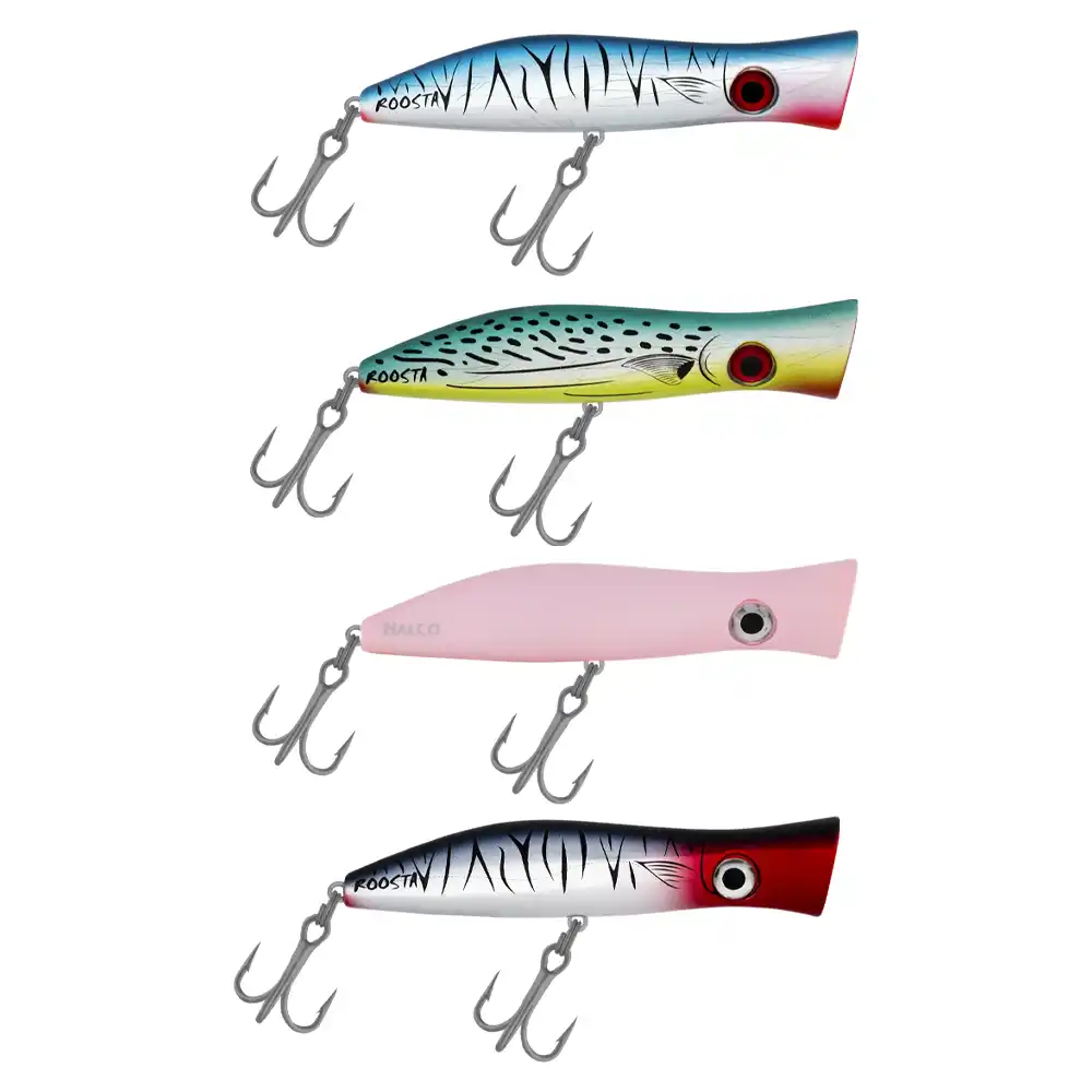El resistente Roosta Popper 135 de Halco te enganchará a la pesca de superficie al instante. Este Popper y blopper de recuperación de alta durabilidad viene de serie con anzuelos triples Mustad del #2/0 para asegurarte más capturas, una y otra vez.
